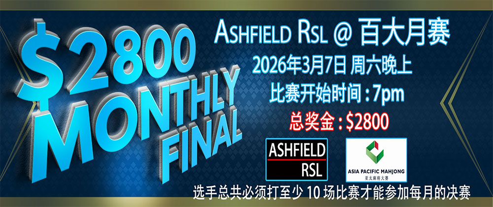 另请注意,9 月 2 日下午和晚上的比赛将在 Ashfield RSL 举行 – 4 Baida Mahjong – 总奖池:$1000