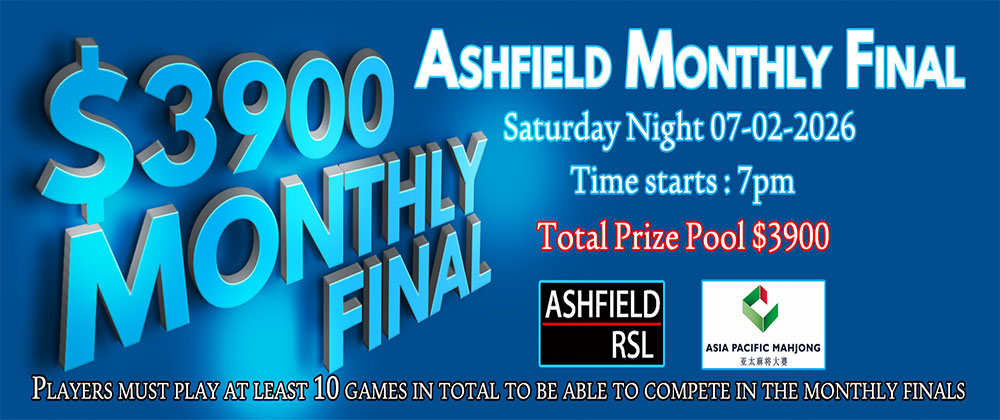 And Ashfield Rsl will hold afternoon DIGITAL game at 3pm and night game 7pm will be TABLE mahjong game