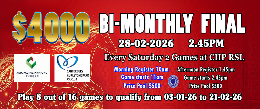 Please also note that the afternoon and night games on 2 September will be held at Ashfield RSL – 4 Baida Mahjong – Total Prize Pool: $1000
