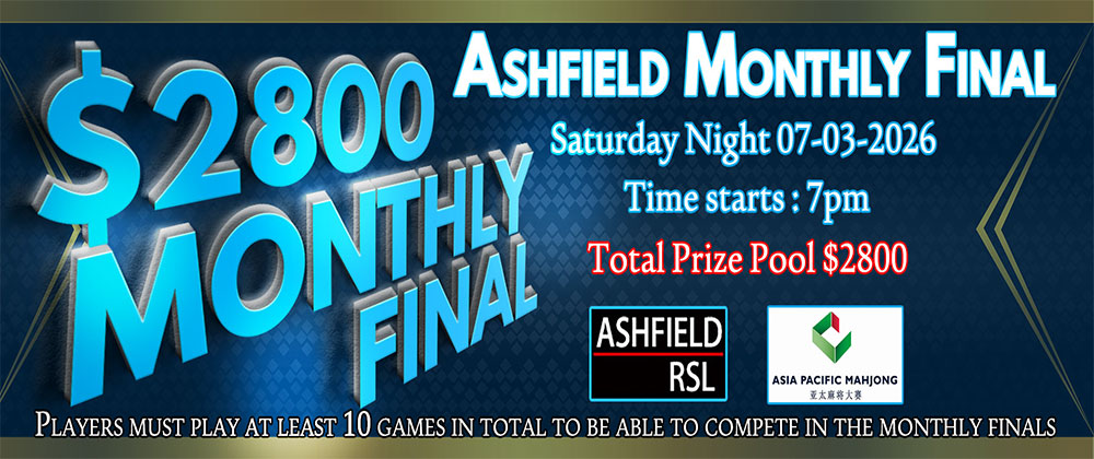 And Ashfield Rsl will hold afternoon DIGITAL game at 3pm and night game 7pm will be TABLE mahjong game